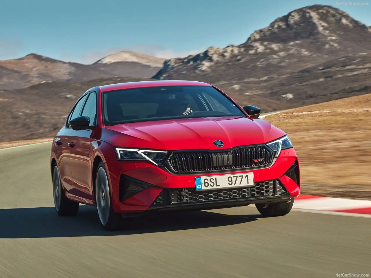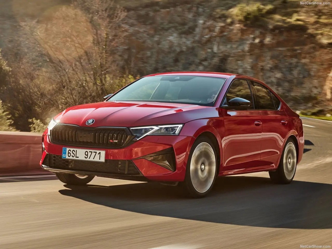 التصميم الخارجي لشكودا أوكتافيا RS 2025 يُظهر نضجًا وثقة في الهوية. فالمقدمة العدوانية مزوّدة بمصابيح Matrix LED حادة، وشبك أمامي أسود يحمل شارة RS بفخر. ومن الجانبين، تمنح الجنوط الرياضية بقياس 19 إنش طابعًا هجوميًا، وتكتمل الشخصية القوية بخطوط ديناميكية تنساب حتى الخلف حيث نجد مشتت الهواء والمخارج الثنائية للعادم بلون الكروم الداكن.