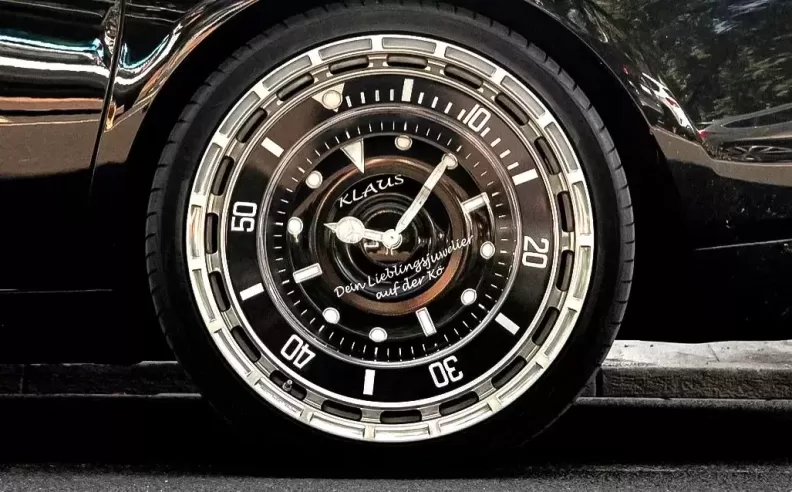 بهذه اللمسات، لم يعد على المارة التساؤل عن نوع الساعة التي يرتديها صاحب السيارة، فالجواب بات مكتوباً بحجم 24 بوصة على كل ركن من أركانها.