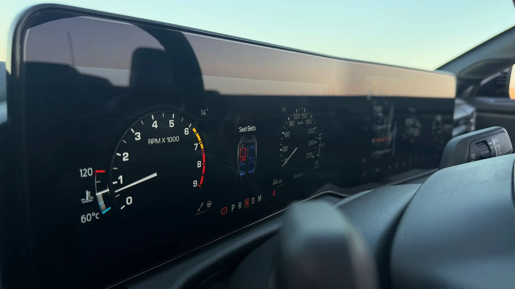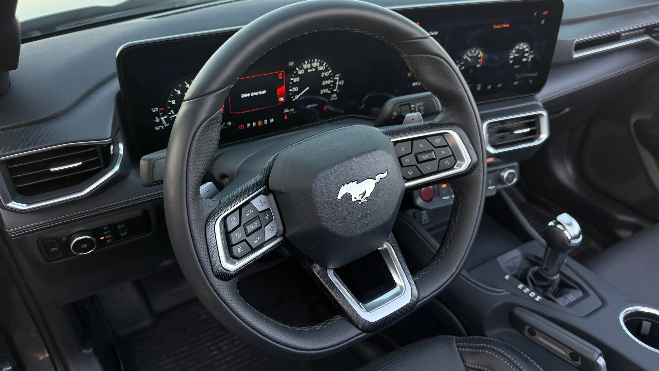 Inside the cabin, the Mustang Convertible combines retro inspired design with modern technology. The digital instrument cluster is fully customizable and pairs with a large central touchscreen that supports Apple CarPlay and Android Auto. Materials feel sporty and premium, especially in higher trims, with leather seats and contrast stitching.