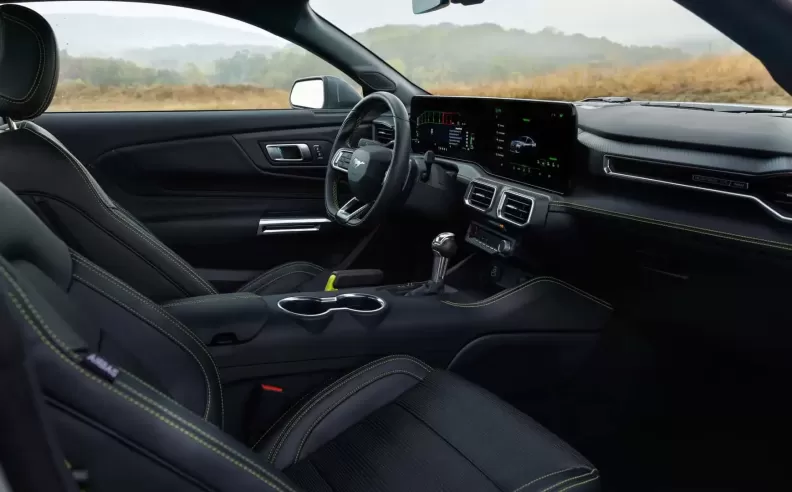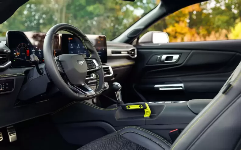 The Mustang RTR 2026 arrives with serious hardware borrowed from high performance models like the Dark Horse. It features a new rear subframe and sway bars that increase lateral rigidity for sharp cornering. Brembo brakes with six pistons up front and four in the rear deliver strong stopping power, especially during sideways action.