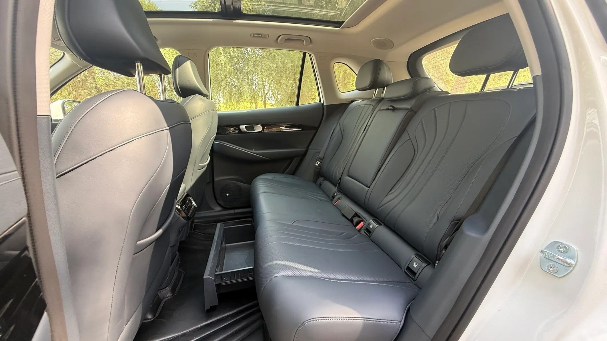 Ride quality lands in the sweet spot for daily driving as the suspension rounds off speed bumps and settles quickly after bigger hits. At 120 km per hour the cabin targets about 68.3 dB so conversations stay clear and fatigue stays low on long Sheikh Zayed runs. Interior packaging claims 67.2 percent space utilization so both rows feel generous. Front seats recline fully and use five plus one layered cushions with ventilation, heating, and an eight point massage, while the rear bench offers a first class feel. Smart storage, hidden cubbies, and fold flat front seats make quick work of strollers, shopping, and weekend luggage.