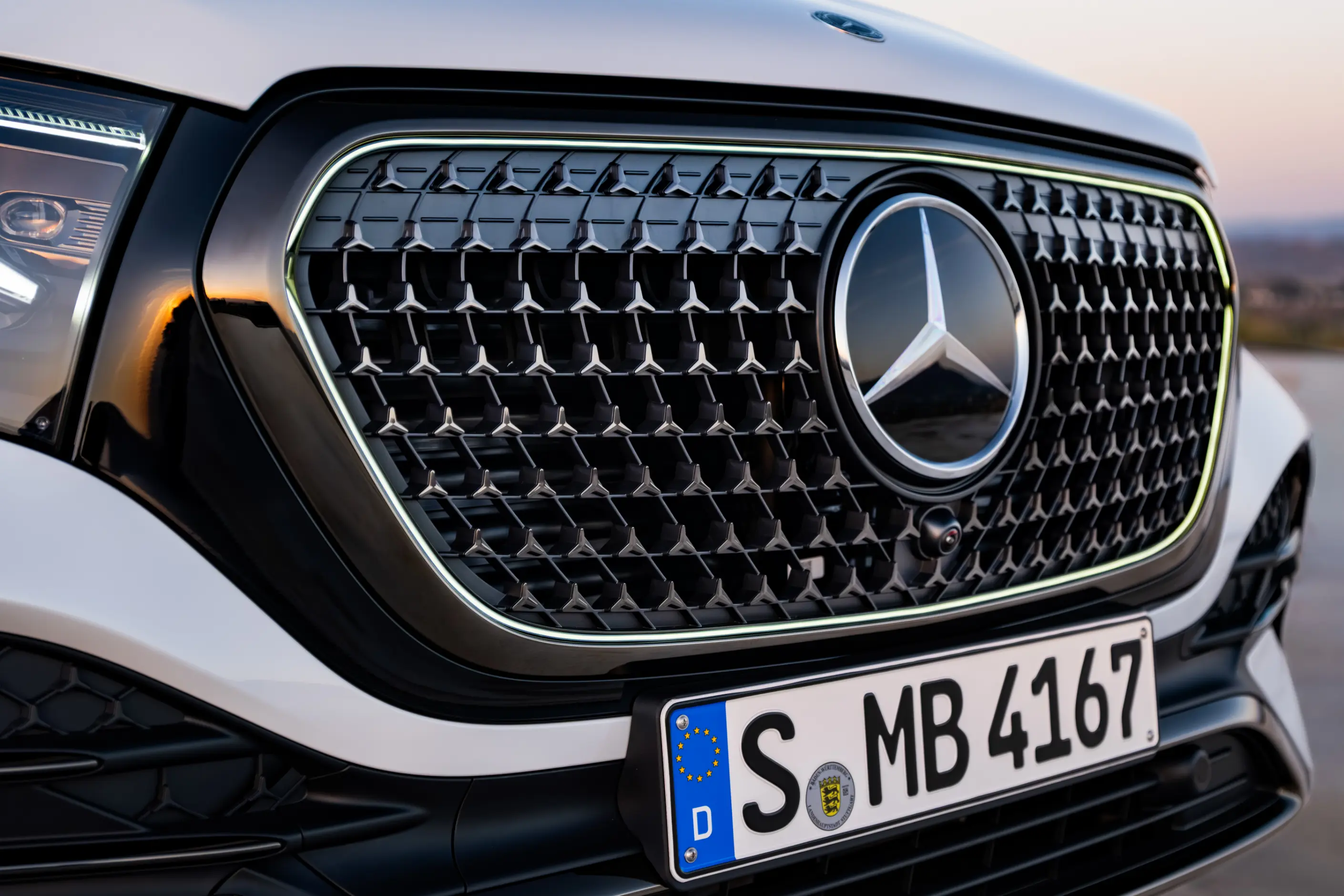 Mercedes Benz strengthens the visual identity of the GLE with a more distinctive and confident design. The front end now features a larger grille with an optional illuminated central star and contour lighting, creating a strong presence on the road. The redesigned headlamps introduce horizontal star motifs that give the SUV a recognizable light signature, while DIGITAL LIGHT technology improves both brightness and efficiency with a larger high resolution light field.