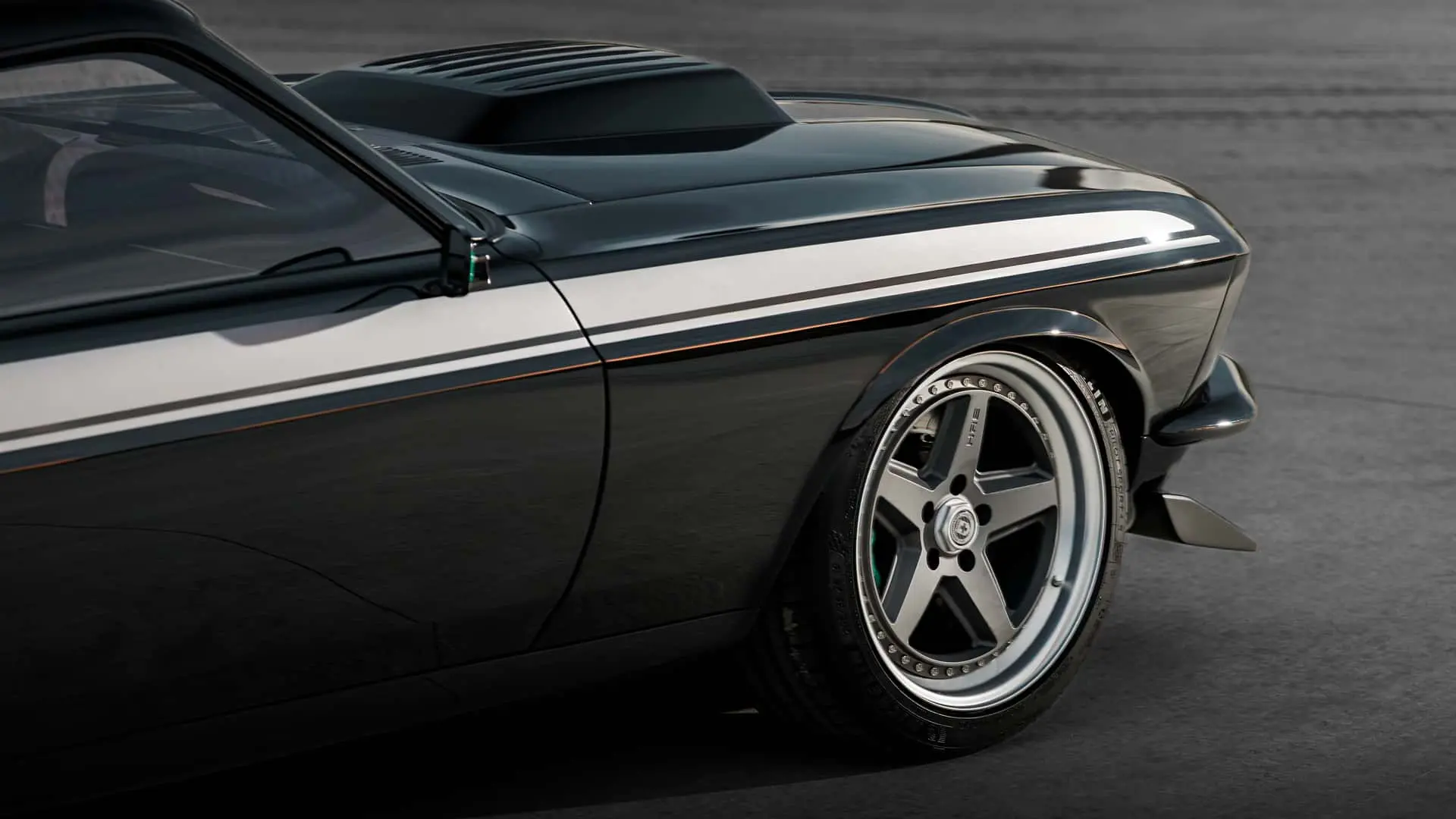 Ringbrothers started with a full teardown of the original Mustang, rebuilding it from the ground up on a modern Roadster Shop unibody platform. This switch from a body on frame to a unibody structure brought new levels of stiffness and handling. The chassis features a dual arm suspension with Fox RS coilovers for balanced comfort and sharp performance, while lightweight HRE wheels wrapped in Michelin Pilot Sport 4S tires provide outstanding grip.