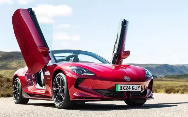 The MG Cyberster looks nothing like any other car in the brand’s recent lineup. With its sharp LED headlights and arrow shaped nose, it draws inspiration from modern tech and classic roadsters. The showstopper is the electric scissor doors that open in seconds, paired with a soft top roof that folds away in under 15 seconds even while driving up to 48 km/h. Sitting on 20 inch turbine style wheels and wrapped in Pirelli P Zeros, the Cyberster’s low stance and sculpted lines make it stand out anywhere.